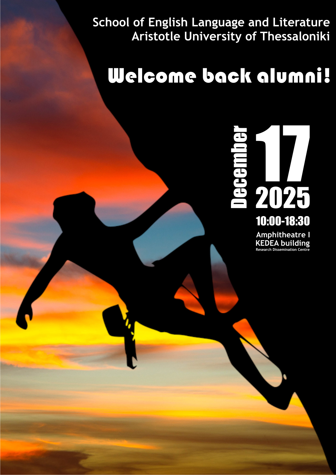 Το Τμήμα Αγγλικής Γλώσσας και Φιλολογίας του Αριστοτελείου Πανεπιστημίου Θεσσαλονίκης διοργανώνει την Τετάρτη 17 Δεκεμβρίου 2025 (10:00–17:30) Ημερίδα Επαγγελματικού Προσανατολισμού, η οποία θα πραγματοποιηθεί στο Αμφιθέατρο Ι του ΚΕΔΕΑ.