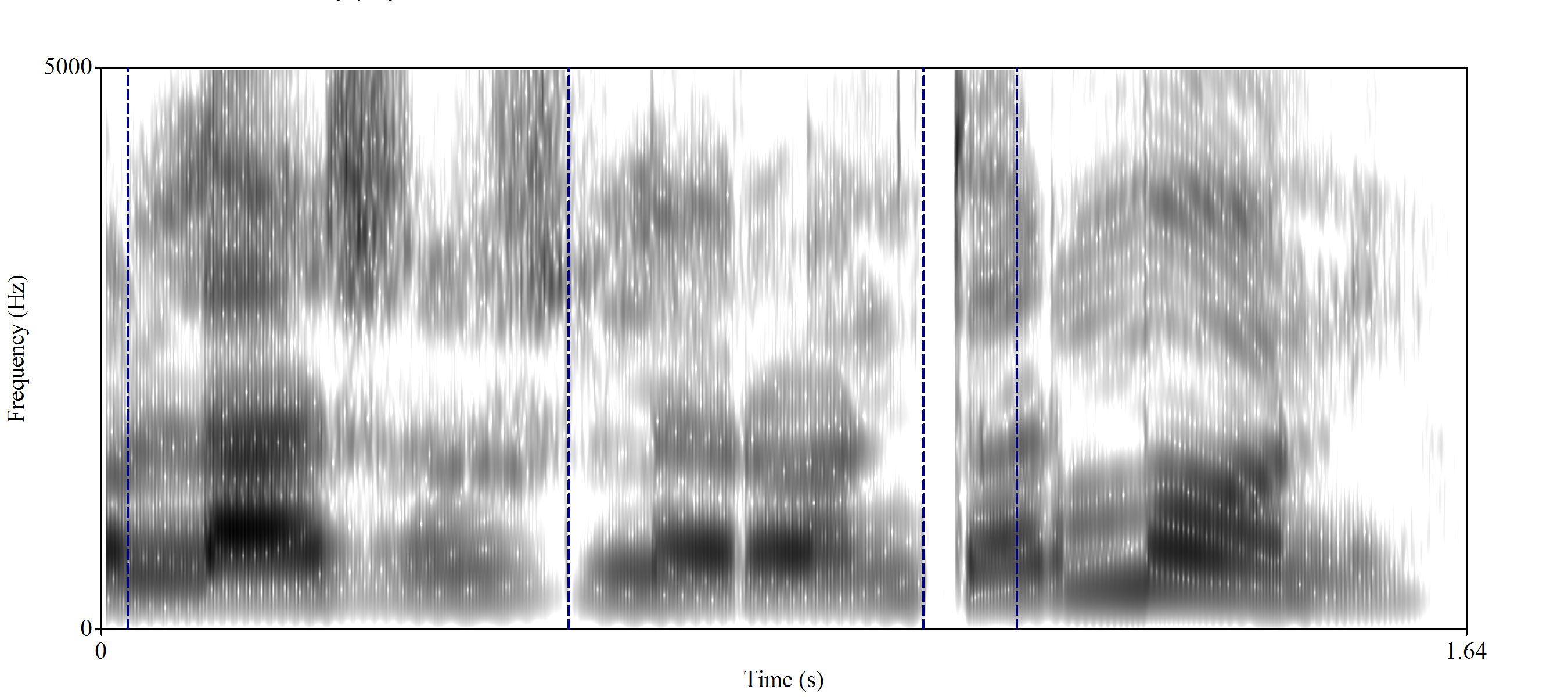 Η φωνή ανεβαίνει στην τονισμένη συλλαβή και της πρώτης και της δεύτερης λέξης, αλλά πάει πιο ψηλά στην τονισμένη συλλαβή της τρίτης λέξης, που είναι εστιασμένη (δηλ. έντονα τονισμένη). Αμέσως μετά πέφτει μέχρι το τέλος της πρότασης. Στα ελληνικά, ό,τι ακολουθεί την εστιασμένη συλλαβή παράγεται με χαμηλή φωνή. Όταν είναι τονισμένη η τελευταία συλλαβή της τελευταίας λέξης, όλη η ανοδική και καθοδική κίνηση γίνεται μέσα σε αυτήν την συλλαβή.
